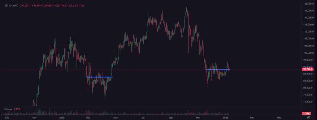 Bitcoin se už delší dobu pohybuje v poměrně úzkém cenovém rozpětí a obchodníci sledují, zda se blíží konec této fáze. Od 21. listopadu se kryptoměna obchoduje přibližně mezi 80 tisíci a 95 tisíci dolary, což představuje zhruba dvacetiprocentní rozpětí. Toto období se nyní blíží délce, která odpovídá podobné konsolidaci z přelomu února a dubna 2025.